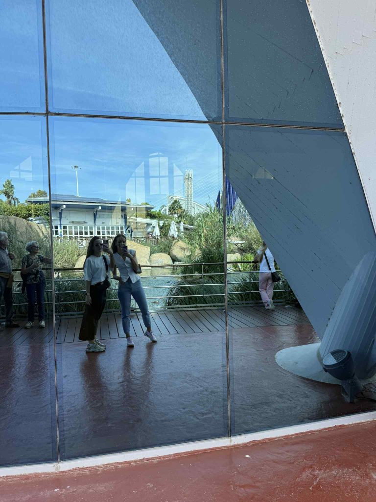 Najpoznatija stvar u Valenciji je Ciudad de las Artes y las Ciencias, a radi se o kompleksu koji se sastoji od zgrada za umjetnost, znanost i kulturu. Prvi je Palau de les Arts Reina Sofia – služi za održavanje koncerata, opera i sl., zatim Hemisfèric 3D kino u kojem se održavaju filmovi, ja sam baš htjela ići tu, ali filmovi se prikazuju na svakih sat vremena pa nam se nije dalo čekati. Sljedeći na redu je Museo de las Ciencias Príncipe Felipe – muzej znanosti, a ovdje možete kupiti i ulaznice za Oceanogràfic València koji se nalazi na kraju kompleksa. Ulaznica je 41€ , radi se o najvećem akvariju u Europi. Ovdje ćete vidjeti životinje koje dosad nisam vidjela nigdje. Inače kad sam u stranoj državi, volim posjećivati akvarije i mogu reći da je ovaj najljepši. Također imate i predstave s dupinima koje traju oko 30 minuta, iako nisam za to baš, stvarno se vidi da staratelji strašno vole te dupine i da su im maksimalno privrženi. Zadnja, tj zgrada prije akvarija je L’Àgora u kojoj se održavaju privremene izložbe, predstave i konferencije.