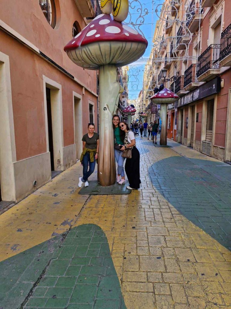 Castel Santa Barbara – muslimanski dvorac iz 9.st. koji nudi predivan pogled na grad, kao i vođene ture. Preko puta njega ja odmah dugačka pješčana plaža Playa del Postiguet. Možete se popeti gore pješke, liftom ili automobilom. Sljedeća stvar je Mercat Central d’Alacant – španjolske tržnice su prepune boja, mirisa i okusa. Rade od ponedjeljka do subote od 07:00 do 14:30. Kroz šetnju ćete doći i do Basilica of St Mary of Alicante – ulaznica je 6€ , ali možete proviriti malo i unutra da vidite jel vam se isplati uzimati ulaznicu ili ne. Mi nismo ušli unutra nego smo provirili i krenuli dalje 🙂 Vjerojatno prva stvar koju ćete posjetiti dolaskom u Alicante je Passeig Esplanada d’Espanya – najpoznatije šetalište u Alicanteu, nalazi se odmah pokraj rive. Prekrivena je s mozaik pločicama, a pored se nalaze mnogobrojni restorani i kafići. Sljedeća poprilično poznata stvar je Calle de las Setas – ulica gljiva – poznata po ogromnim divivskim gljivama, a nalazi se u ulici San Francisco.