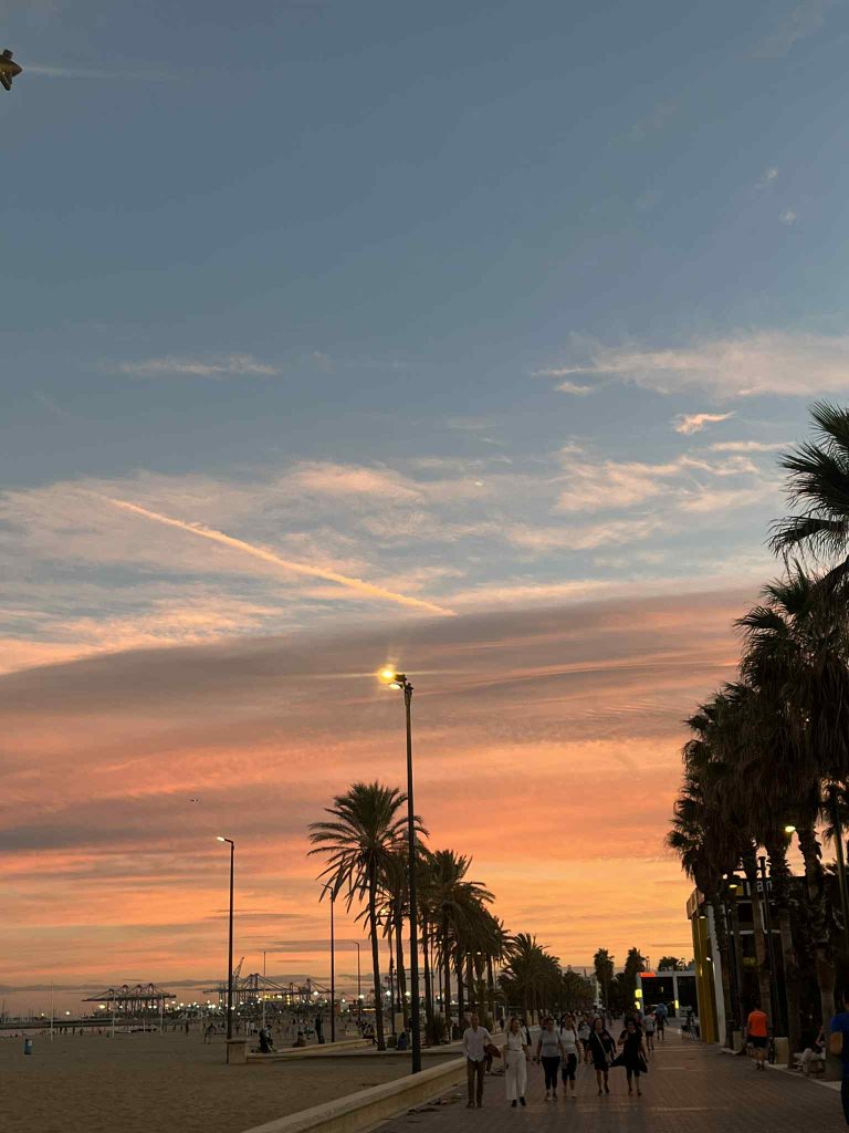 Najpoznatija plaža ovdje je Malvarrosa plaža, pješčana plaža s plitkim ulazom. Šetnica uz koju možete šetati i dočekati zalazak sunca. Mi smo ovdje otišli na paellu u restoran La Taberna Casera. Uzeli smo paellu s morskim plodovima i piletinom i mene se iskreno nije dojmilo, čak sam ostala malo razočarana, ali je zato predjelo bilo odlično. Također je sangria ovdje bila odlična.